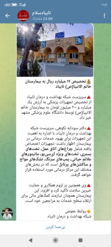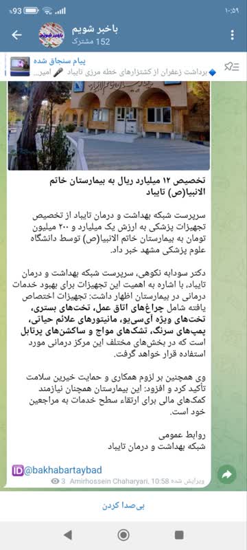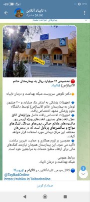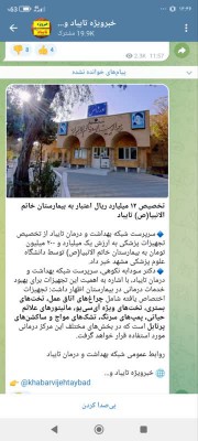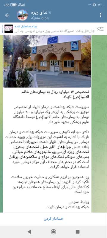 تخصیص ۱۲ میلیارد ریال به بیمارستان خاتم الانبیا(ص) تایباد