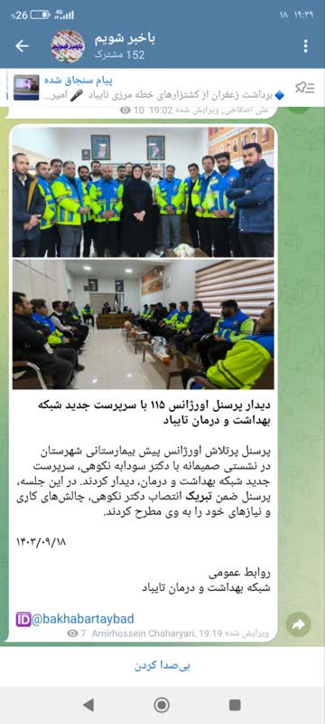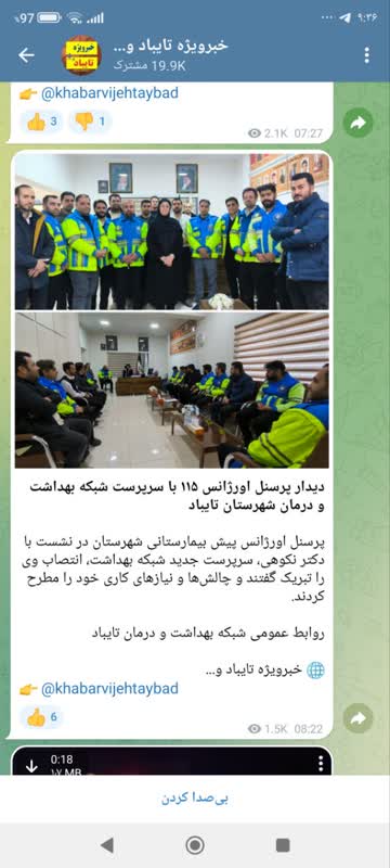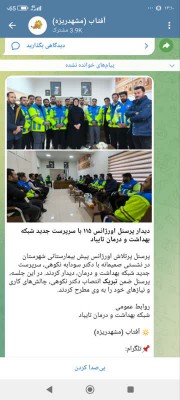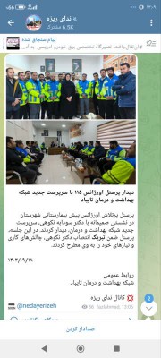 MUMS انعکاس عملکرد شبكه بهداشت و درمان تايباد 18 آذر 1403 بازدید: 40 امتیاز: ( 0 Rating ) دیدار پرسنل اورژانس ۱۱۵ با سرپرست جدید شبکه بهداشت و درمان تایباد امتیاز کاربران لطفا رای دهید رای 1 رای 2 رای 3 رای 4 رای 5 انعکاس رسانه ای شبکه های اجتماعی انعکاس رسانه ای شبکه های اجتماعی انعکاس رسانه ای پرسنل پرتلاش اورژانس ۱۱۵ شهرستان در نشستی صمیمانه با دکتر سودابه نکوهی، سرپرست جدید شبکه بهداشت و درمان، دیدار کردند. در این جلسه، پرسنل ضمن تبریک انتصاب دکتر نکوهی، چالشهای کاری و نیازهای خود را به وی مطرح کردند. شبکه های اجتماعی