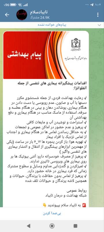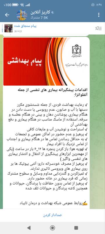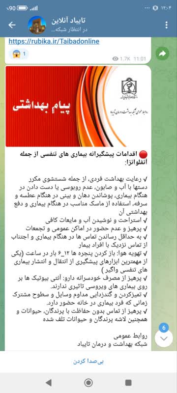 √ پرهیز از تماس بدون حفاظت با پرندگان، حیوانات و همچنین لاشه پرندگان و حیوانات تلف شده