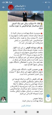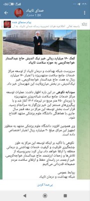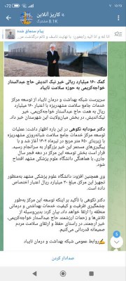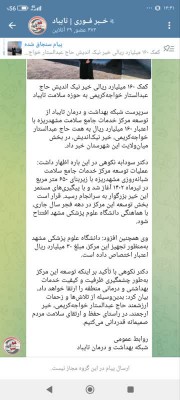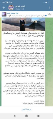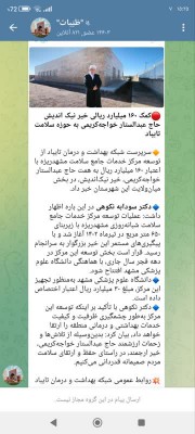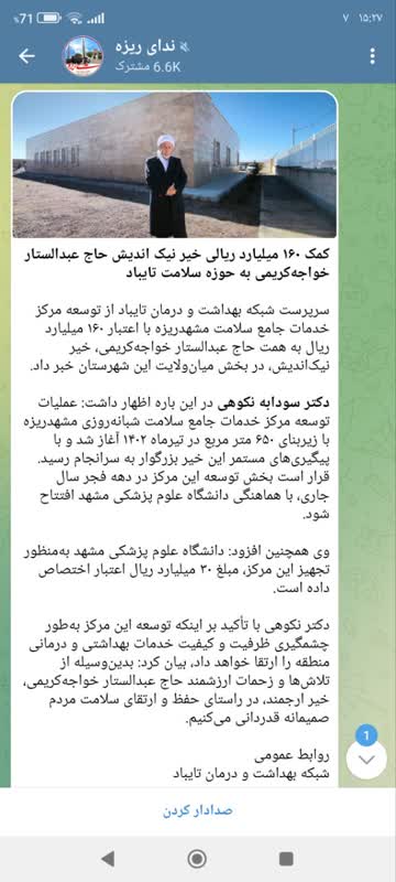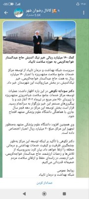 دکتر سودابه نکوهی در این باره اظهار داشت: عملیات توسعه مرکز خدمات جامع سلامت شبانهروزی مشهدریزه با زیربنای ۶۵۰ متر مربع در تیرماه ۱۴۰۲ آغاز شد و با پیگیریهای مستمر این خیر بزرگوار به سرانجام رسید. قرار است بخش توسعه این مرکز در دهه فجر سال جاری، با هماهنگی دانشگاه علوم پزشکی مشهد افتتاح شود. وی همچنین افزود: دانشگاه علوم پزشکی مشهد بهمنظور تجهیز این مرکز، مبلغ ۳۰ میلیارد ریال اعتبار اختصاص داده است. دکتر نکوهی با تأکید بر اینکه توسعه این مرکز بهطور چشمگیری ظرفیت و کیفیت خدمات بهداشتی و درمانی منطقه را ارتقا خواهد داد، بیان کرد: بدینوسیله از تلاشها و زحمات ارزشمند حاج عبدالستار خواجهکریمی، خیر ارجمند، در راستای حفظ و ارتقای سلامت مردم صمیمانه قدردانی میکنیم.