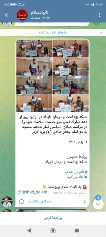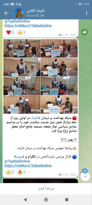 MUMS انعکاس عملکرد شبكه بهداشت و درمان تايباد 12 بهمن 1403 بازدید: 36 امتیاز: ( 0 Rating ) بر پایی میز خدمت سلامت در مراسم عبادی سیاسی نماز جمعه، مسجد جامع امام جعفر صادق (ع)توسط شبکه بهداشت و درمان تایباد امتیاز کاربران لطفا رای دهید رای 1 رای 2 رای 3 رای 4 رای 5 انعکاس رسانه ای شبکه های اجتماعی انعکاس رسانه ای شبکه های اجتماعی انعکاس رسانه ای شبکه بهداشت و درمان تایباد در اولین روز از دهه مبارک فجر، میز خدمت سلامت خود را در مراسم عبادی سیاسی نماز جمعه، مسجد جامع امام جعفر صادق (ع) برپا کرد. شبکه های اجتماعی