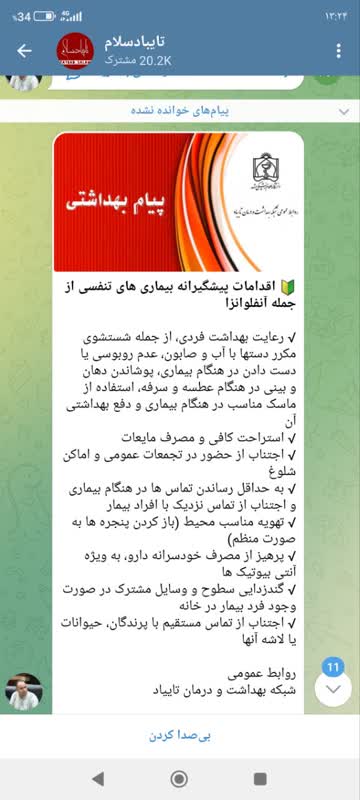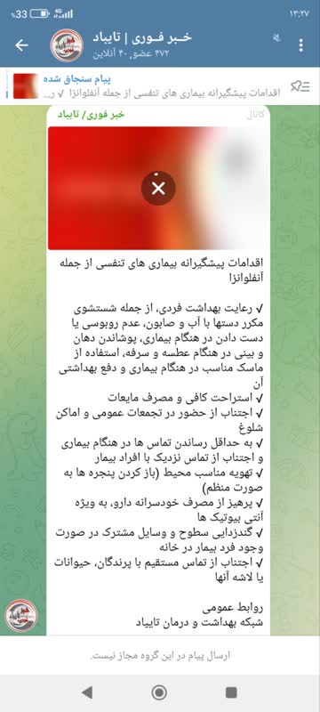 √ پرهیز از تماس بدون حفاظت با پرندگان، حیوانات و همچنین لاشه پرندگان و حیوانات تلف شده