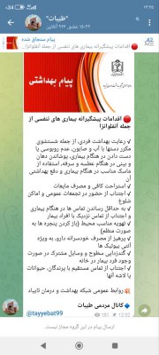 √ تهویه هوا: باز کردن پنجره ها ۱۲_۶ بار در ساعت (یکی از مهمترین ابزارهای پیشگیری از انتقال و انتشار بیماری های تنفسی واگیر )