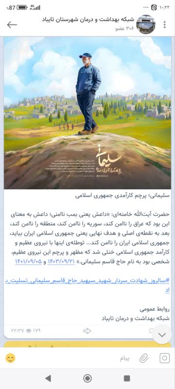 MUMS انعکاس عملکرد شبكه بهداشت و درمان تايباد 25 بهمن 1403 بازدید: 36 امتیاز: ( 0 Rating ) فضاسازی و برپایی ایستگاه صلواتی سالگرد شهادت قهرمان وطن، سردار حاج قاسم سلیمانی در شبکه تایباد امتیاز کاربران لطفا رای دهید رای 1 رای 2 رای 3 رای 4 رای 5 انعکاس رسانه ای شبکه های اجتماعی کلیپ انعکاس رسانه ای شبکه های اجتماعی کلیپ انعکاس رسانه ای فضاسازی و برپایی ایستگاه صلواتی سالگرد شهادت قهرمان وطن، سردار حاج قاسم سلیمانی شبکه های اجتماعی کلیپ