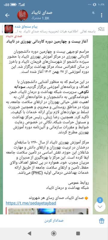 مراسم توجیهی بیست و چهارمین دوره دانشجویان کاردانی بهورزی در مرکز آموزش بهورزی تایباد با حضور سیزده دانشجو از شهرستانهای فریمان، تایباد و باخرز، در سالن کنفرانس ستاد مرکز بهداشت برگزار شد. این دوره آموزشی از اول اسفند ۱۴۰۳ آغاز خواهد شد. در این مراسم که به منظور آشنایی دانشجویان با اهداف و برنامههای آموزشی برگزار گردید، دکتر سودابه نکوهی، سرپرست شبکه بهداشت و درمان تایباد، ضمن خوشامدگویی به دانشجویان و خانوادههای آنان، به اهمیت نقش حیاتی بهورزان در ارتقای سلامت جامعه، به ویژه در مناطق روستایی و محروم، و نیز ضرورت تسلط بر مهارتهای لازم برای ارائه خدمات با کیفیت تاکید کرد. همچنین، دکتر رضا زینلی، رئیس مرکز بهداشت و مسئول حراست شبکه، نکاتی را درباره رعایت ضوابط و مقررات سازمانی و آئیننامه دوره آموزش بهورزی مطرح کردند. مرکز آموزش بهورزی تایباد از سال ۱۳۶۰ با سابقهای درخشان در تربیت بهورزان و ارتقای دانش و مهارت شاغلان این حوزه، نقشی اساسی در تأمین سلامت جامعه ایفا کرده است. این مرکز با اتکا بر مدیر و مربیان مجرب خود، همواره در پی تحقق اهداف والای حفظ، تأمین و ارتقای سلامت جامعه از طریق ارائه خدمات بهداشتی درمانی اولیه (PHC) است.