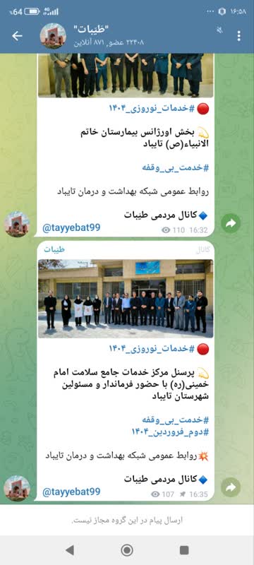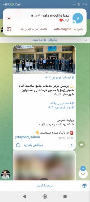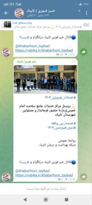 MUMS انعکاس عملکرد شبكه بهداشت و درمان تايباد 02 فروردين 1404 بازدید: 42 امتیاز: ( 0 Rating ) خدمات نوروزی ۱۴۰۴ پرسنل مرکز خدمات جامع سلامت امام خمینی(ره) با حضور فرماندار و مسئولین شهرستان تایباد امتیاز کاربران لطفا رای دهید رای 1 رای 2 رای 3 رای 4 رای 5 انعکاس رسانه ای شبکه های اجتماعی انعکاس رسانه ای شبکه های اجتماعی انعکاس رسانه ای #خدمات_نوروزی_۱۴۰۴ پرسنل مرکز خدمات جامع سلامت امام خمینی(ره) با حضور فرماندار و مسئولین شهرستان تایباد #خدمت_بی_وقفه دوم فروردین 1404 شبکه های اجتماعی