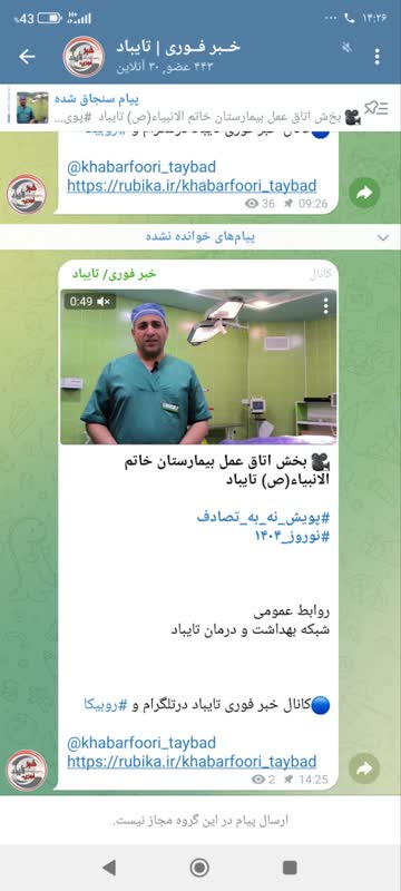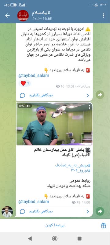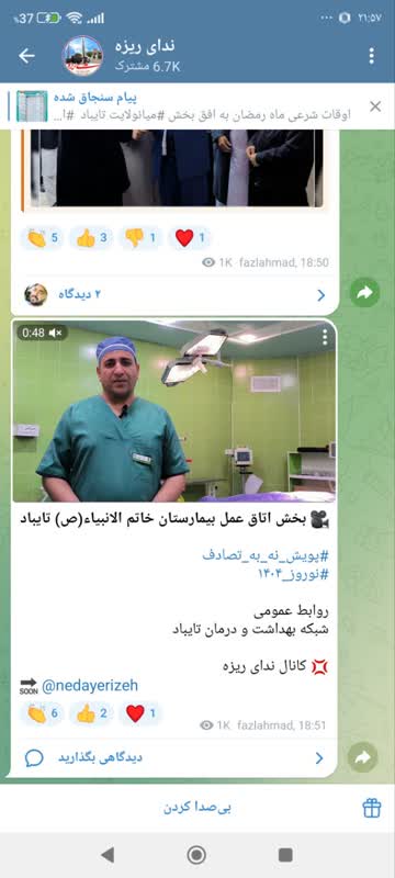 MUMS انعکاس عملکرد شبكه بهداشت و درمان تايباد 03 فروردين 1404 بازدید: 26 امتیاز: ( 0 Rating ) پویش نه به تصادف بخش اتاق عمل بیمارستان خاتم الانبیاء(ص) تایباد امتیاز کاربران لطفا رای دهید رای 1 رای 2 رای 3 رای 4 رای 5 انعکاس رسانه ای شبکه های اجتماعی کلیپ انعکاس رسانه ای شبکه های اجتماعی کلیپ انعکاس رسانه ای بخش اتاق عمل بیمارستان خاتم الانبیاء(ص) تایباد #پویش_نه_به_تصادف #نوروز_۱۴۰۴ سوم فروردین شبکه های اجتماعی کلیپ