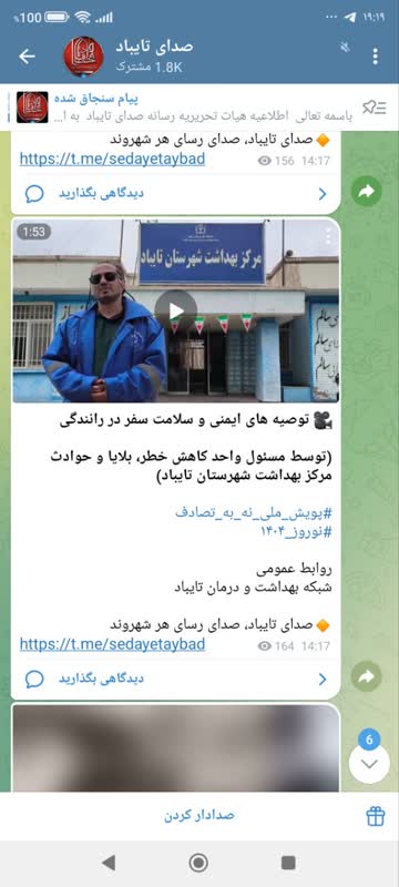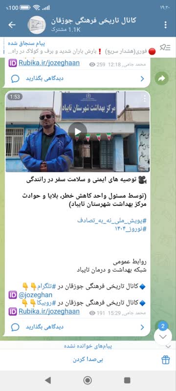 MUMS انعکاس عملکرد شبكه بهداشت و درمان تايباد 06 فروردين 1404 بازدید: 80 امتیاز: ( 0 Rating ) پویش نه به تصادف توصیه های ایمنی و سلامت سفر در رانندگی امتیاز کاربران لطفا رای دهید رای 1 رای 2 رای 3 رای 4 رای 5 انعکاس رسانه ای شبکه های اجتماعی کلیپ آپارات دانشگاه انعکاس رسانه ای شبکه های اجتماعی کلیپ آپارات دانشگاه انعکاس رسانه ای توصیه های ایمنی و سلامت سفر در رانندگی (توسط مسئول واحد کاهش خطر، بلایا و حوادث مرکز بهداشت شهرستان تایباد) #پویش_نه_به_تصادف #نوروز_۱۴۰۴ سوم فروردین شبکه های اجتماعی کلیپ آپارات دانشگاه لینک آپارات دانشگاه: https://aparat.com/v/qxnsin1 واحد کاهش خطر، بلایا و حوادث مرکز بهداشت شهرستان تایباد #پویش_ملی_نه_به_تصادف