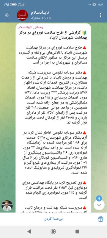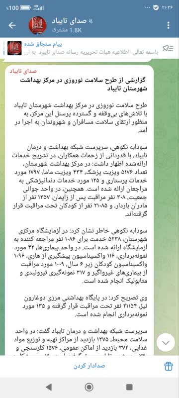 گزارشی از طرح سلامت نوروزی در مرکز بهداشت شهرستان تایباد