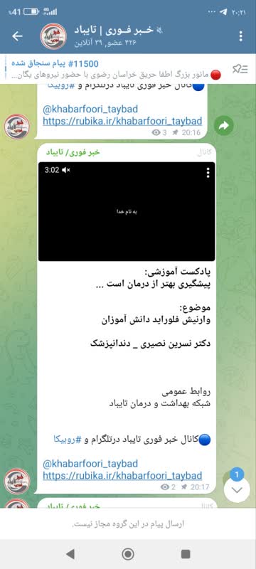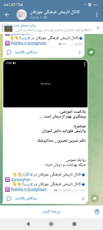 MUMS انعکاس عملکرد شبكه بهداشت و درمان تايباد 11 ارديبهشت 1404 بازدید: 52 امتیاز: ( 0 Rating ) پیشگیری بهتر از درمان است ...وارنیش فلوراید دانش آموزان امتیاز کاربران لطفا رای دهید رای 1 رای 2 رای 3 رای 4 رای 5 انعکاس رسانه ای شبکه های اجتماعی پادکست انعکاس رسانه ای شبکه های اجتماعی پادکست انعکاس رسانه ای پادکست آموزشی: پیشگیری بهتر از درمان است ... موضوع: وارنیش فلوراید دانش آموزان دکتر نسرین نصیری _ دندانپزشک شبکه های اجتماعی پادکست