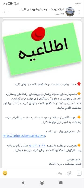جذب پیام‌آور بهداشت در شبکه بهداشت و درمان تایباد