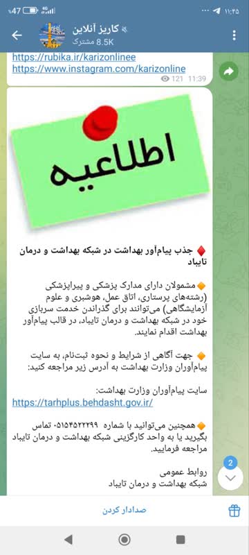 جهت آگاهی از شرایط و نحوه ثبت‌نام، به سایت پیام‌آوران وزارت بهداشت به آدرس زیر مراجعه کنید: