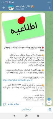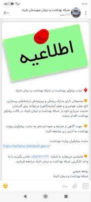 سایت پیام‌آوران وزارت بهداشت: https://tarhplus.behdasht.gov.ir/