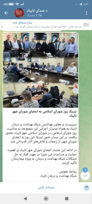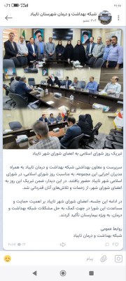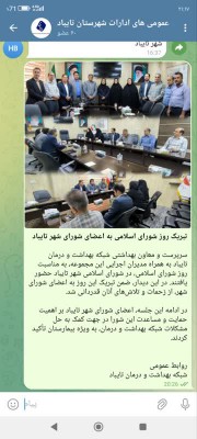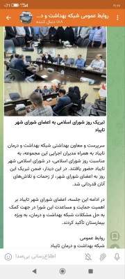 سرپرست و معاون بهداشتی شبکه بهداشت و درمان تایباد به همراه مدیران اجرایی این مجموعه، به مناسبت روز شورای اسلامی، در شورای اسلامی شهر تایباد حضور یافتند. در این دیدار، ضمن تبریک این روز به اعضای شورای شهر، از زحمات و تلاشهای آنان قدردانی شد.