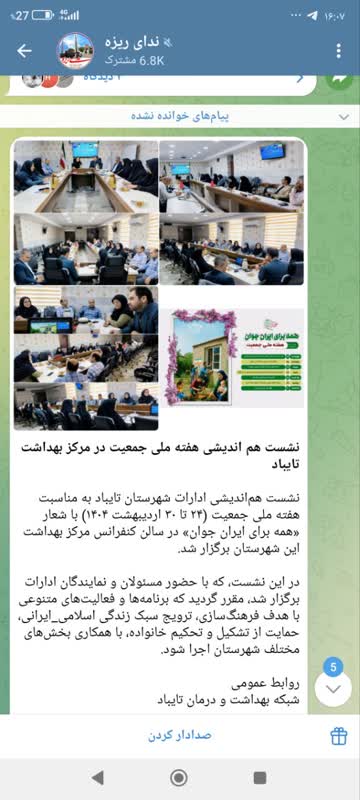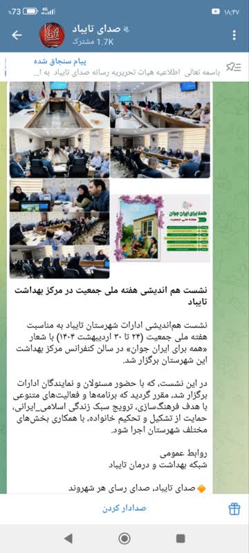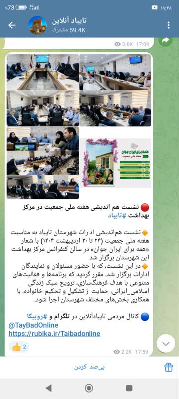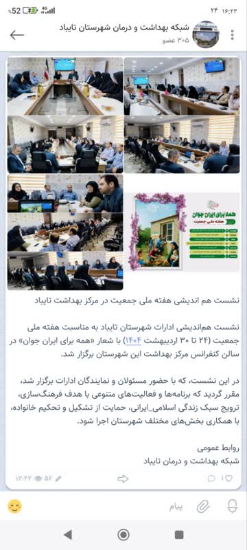نشست هماندیشی ادارات شهرستان تایباد به مناسبت هفته ملی جمعیت (۲۴ تا ۳۰ اردیبهشت ۱۴۰۴) با شعار «همه برای ایران جوان» در سالن کنفرانس مرکز بهداشت این شهرستان برگزار شد.