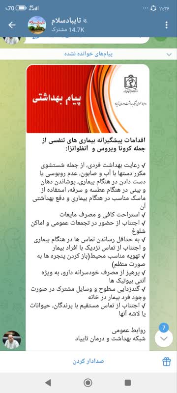 √ تمیز کردن و گندزدایی مداوم سطوح و وسایل مشترک در صورت وجود فرد بیمار در خانه