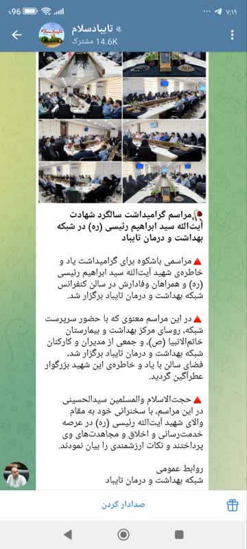 مراسمی باشکوه برای گرامیداشت یاد و خاطرهی شهید آیتالله سید ابراهیم رئیسی (ره) و همراهان وفادارش در سالن کنفرانس شبکه بهداشت و درمان تایباد برگزار شد.