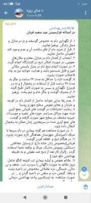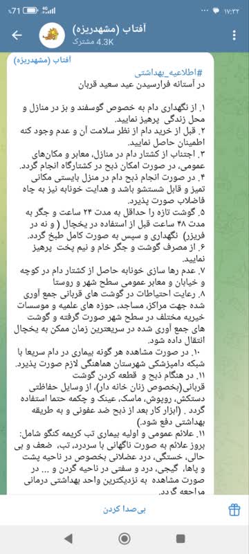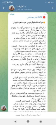 ۳. اجتناب از کشتار دام در منازل، معابر و مکانهای عمومی، در صورت امکان ذبح در کشتارگاه انجام گردد.