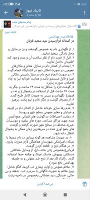 ۷. عدم رها سازی خونابه حاصل از کشتار دام در کوچه و خیابان و معابر عمومی سطح شهر و روستا