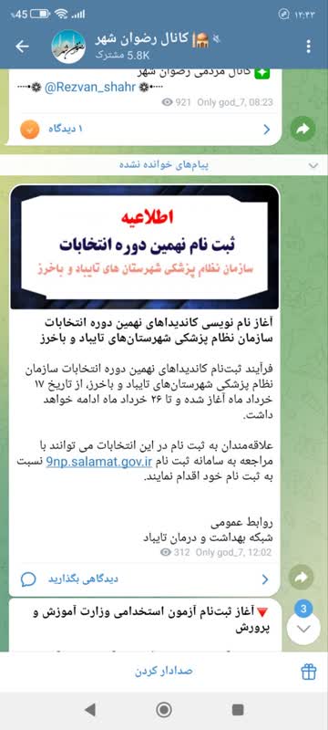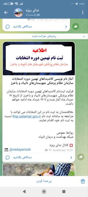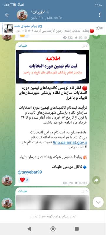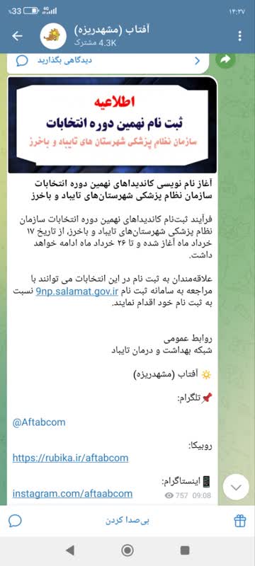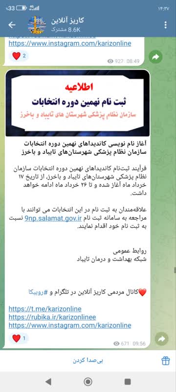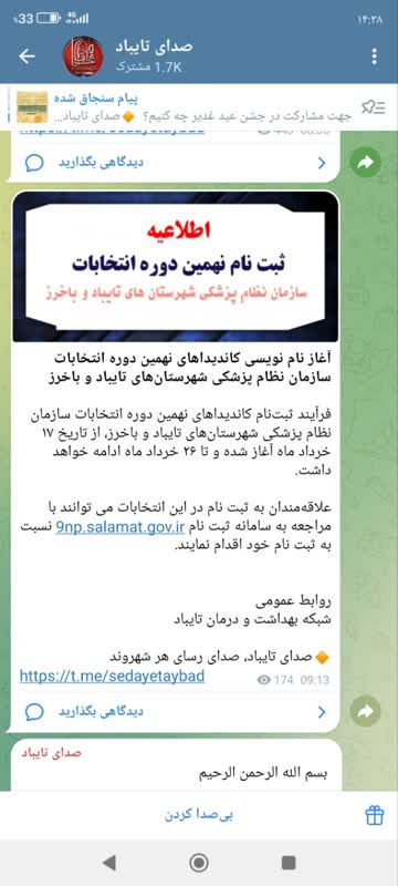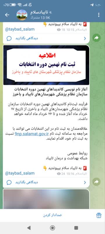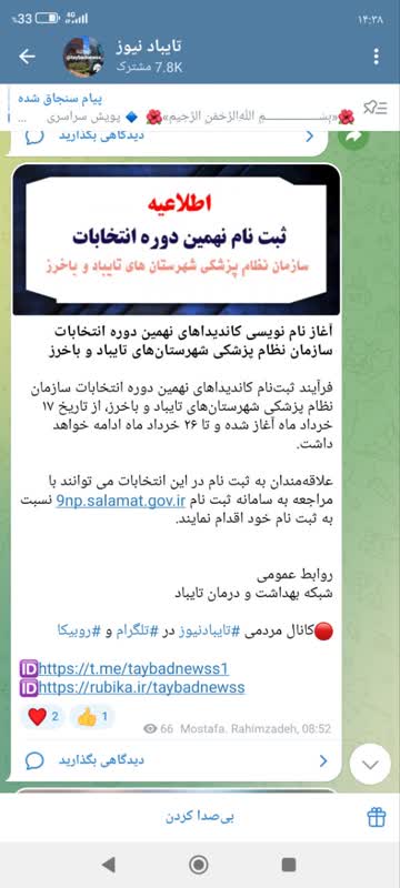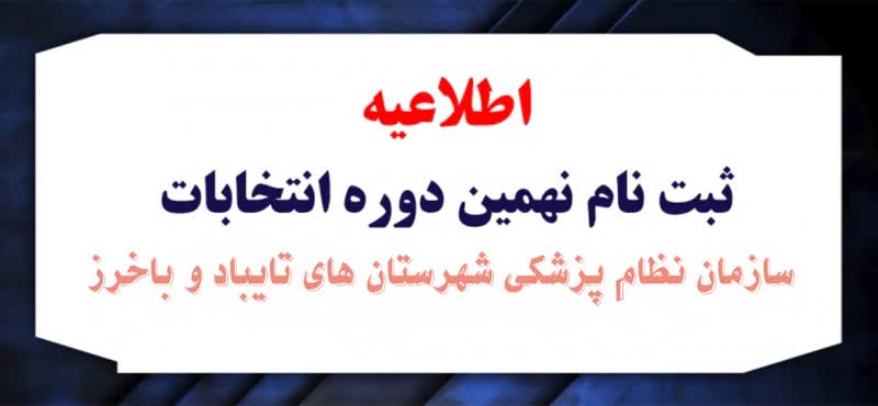 فرآیند ثبتنام کاندیداهای نهمین دوره انتخابات سازمان نظام پزشکی شهرستانهای تایباد و باخرز، از تاریخ ۱۷ خرداد ماه آغاز شده و تا ۲۶ خرداد ماه ادامه خواهد داشت.