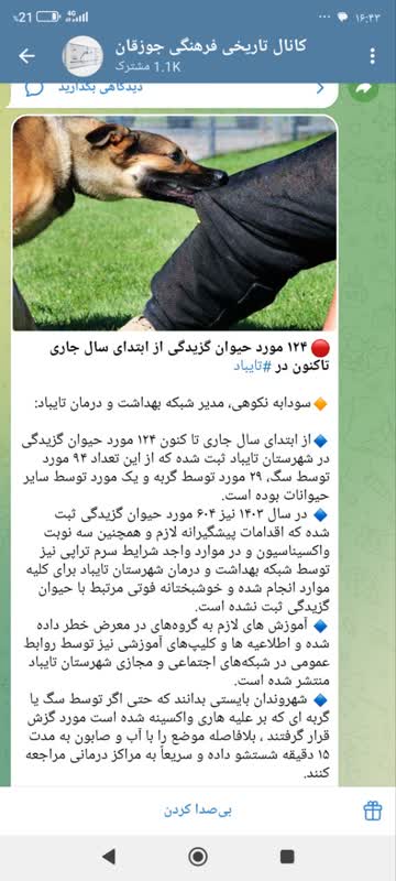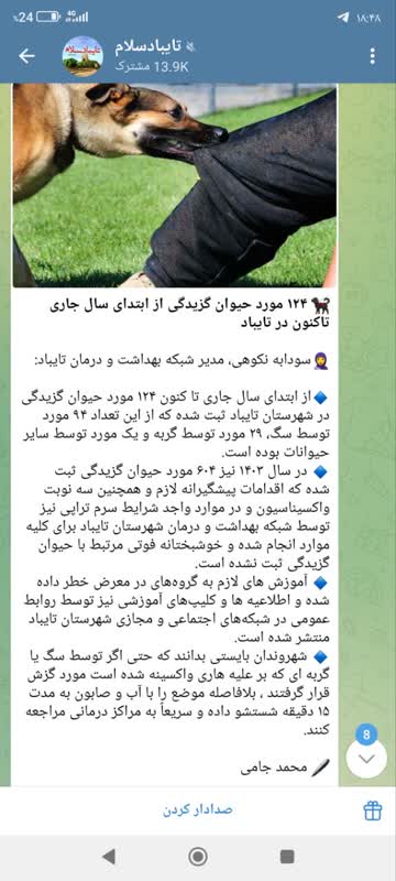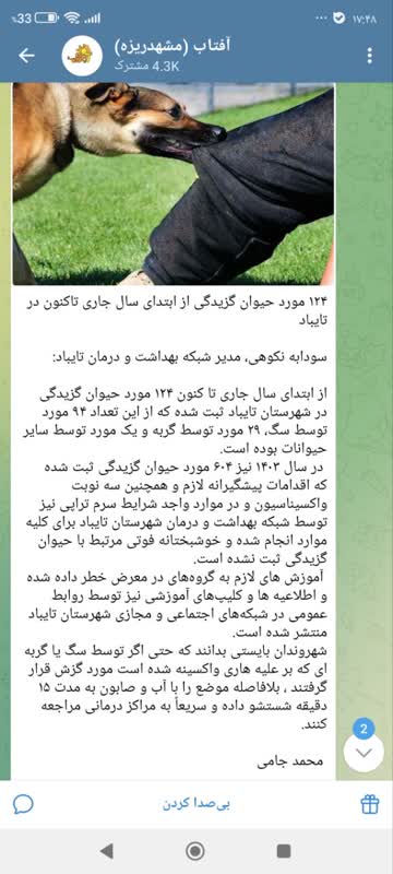 وی افزود: در صورت گزیدگی یا خراش توسط حیوان، زخم را فوراً با آب و صابون به مدت ۱۵ تا ۲۰ دقیقه بشویید و به نزدیکترین مرکز درمانی مراجعه کنید. همچنین از تماس، بازی، تحریک و آزار حیوانات، به ویژه سگها و گربههای ولگرد خودداری کنید.