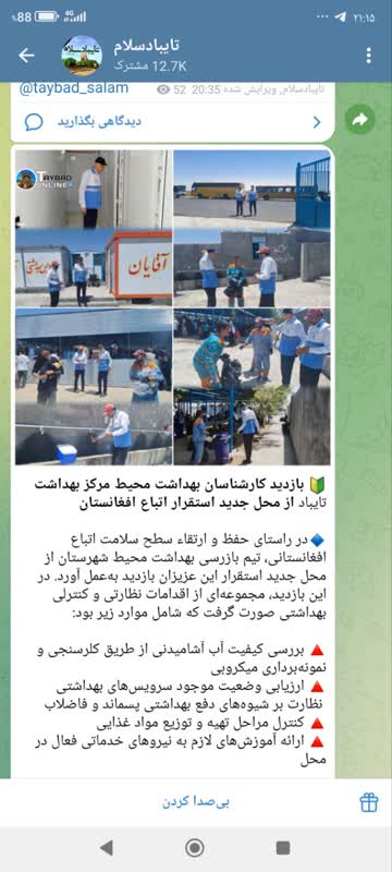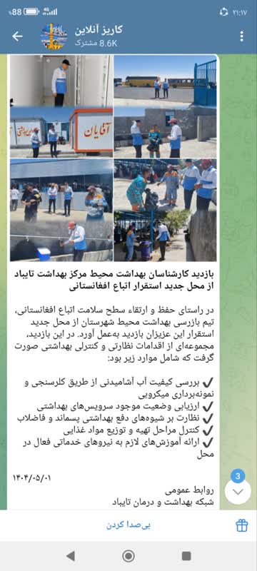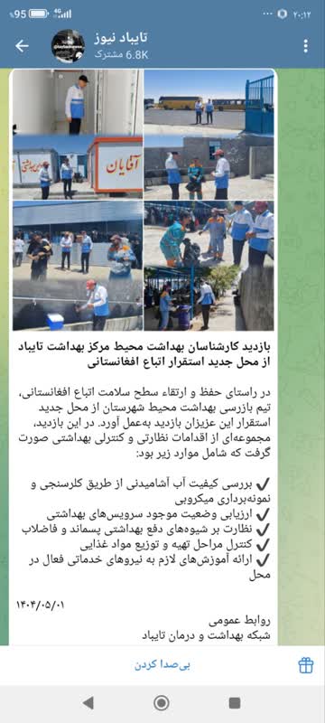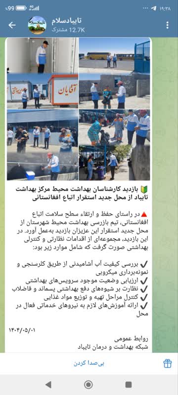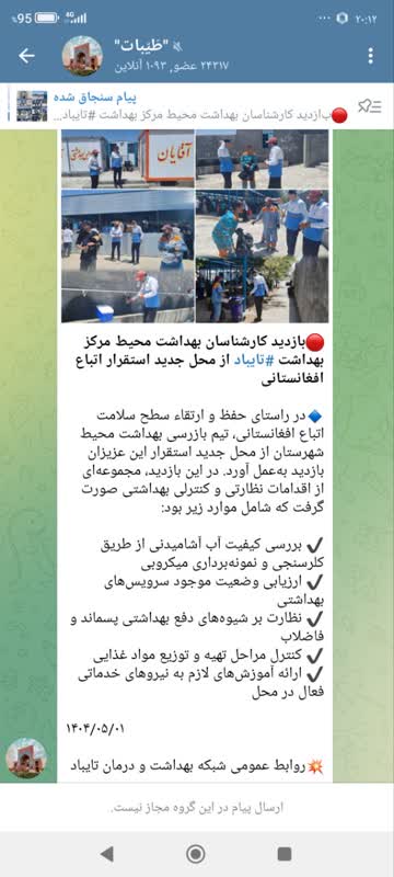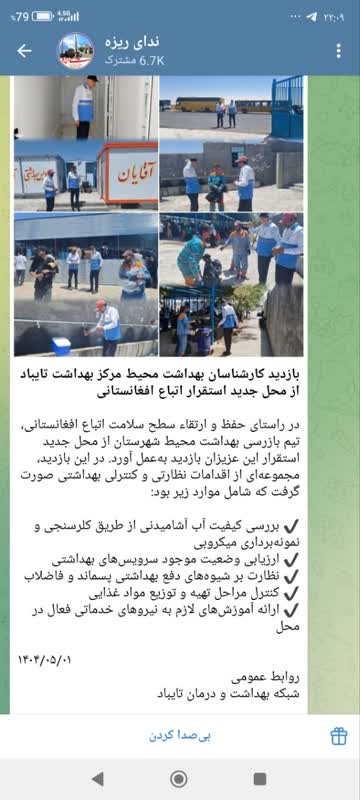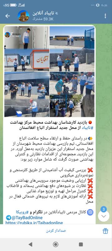 در راستای حفظ و ارتقاء سطح سلامت اتباع افغانستانی، تیم بازرسی بهداشت محیط شهرستان از محل جدید استقرار این عزیزان بازدید بهعمل آورد. در این بازدید، مجموعهای از اقدامات نظارتی و کنترلی بهداشتی صورت گرفت که شامل موارد زیر بود: