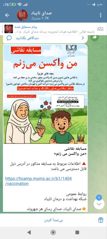 این مسابقه فرصتی است تا کودکان با زبان رنگ و تصویر، تجربهها و نگاه کودکانه خود را نسبت به واکسن بیان کنند.