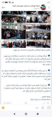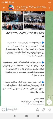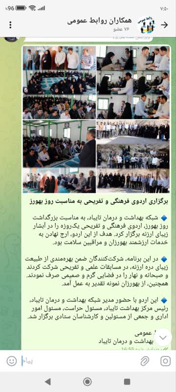 شبکه بهداشت و درمان تایباد، به مناسبت بزرگداشت روز بهورز، اردوی فرهنگی و تفریحی یکروزه را در آبشار زیبای ارزنه برگزار کرد. هدف از این اردو، ارج نهادن به خدمات ارزشمند بهورزان و مراقبین سلامت بود. در این برنامه، شرکتکنندگان ضمن بهرهمندی از طبیعت زیبای دره ارزنه، در مسابقات علمی و تفریحی شرکت کردند و صبحانه و نهار را در فضایی گرم و صمیمی صرف نمودند. همچنین، از بهورزان نمونه تقدیر به عمل آمد. این اردو با حضور مدیر شبکه بهداشت و درمان تایباد، رئیس مرکز بهداشت تایباد، مسئول حراست، مسئول امور اداری و جمعی از مسئولین و کارشناسان ستادی برگزار شد.