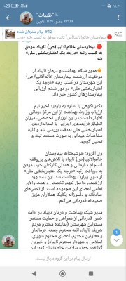 وی افزود:خوشبختانه بیمارستان خاتمالانبیا(ص) تایباد با تلاش بیوقفه، انسجام سازمانی و همدلی کارکنان خود، موفق به دریافت رتبه «درجه یک اعتباربخشی ملی» از سوی وزارت بهداشت شد. این موفقیت ارزشمند نتیجه تعهد، تخصص و همت والای تمامی اعضای این مجموعه است. از تلاشهای صادقانه و دلسوزانه تمامی همکاران صمیمانه قدردانی میکنم.