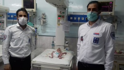 ️در پی اعلام یک مورد ماموریت مادر باردار به مرکزپیام فوریتهای پزشکی تایباددر ساعت ۲۱:۴۰مورخه ۱۴۰۰/۰۳/۲۲درروستای پشته ازتوابع این شهرستان بلافاصله آمبولانس115 شهری باپرسنل (آقایان مصطفی ابراهیمی ؛مهدی گنابادی) به محل اعزام شدن که پس ازرسیدن به محل بیمارخانمی ۲۴ساله با(هفته ۳۲)بارداری و دردهای زایمانی مواجه که به داخل آمبولانس منتقل و اقدامات اولیه انجام گردید بیماردرطول مسیربیمارستان دچار دردهای شدیدزایمانی گردیدکه پرسنل مجبور به توقف شدن ودرداخل آمبولانس زایمان توسط پرسنل اورژانس 115که زایمان بریچ بودانجام شد نوزاد تازه متولدشده درابتدابدون علایم حیاتی بودکه بلافاصله اقدامات احیاء درمحل ودرطول مسیربیمارستان توسط تکنسینهای اورژانس انجام وپس ازطی حدودنیم ساعت اقدامات احیاء نوزادعلائم حیاتی پیداکرد ونوزادبانمره آپگار۱۰وحال عمومی خوب تحویل بخش NICu ومادرباردارهم باحال عمومی خوب تحویل بخش زایشگاه بیمارستان خاتم الانبیاء تایبادشد. |