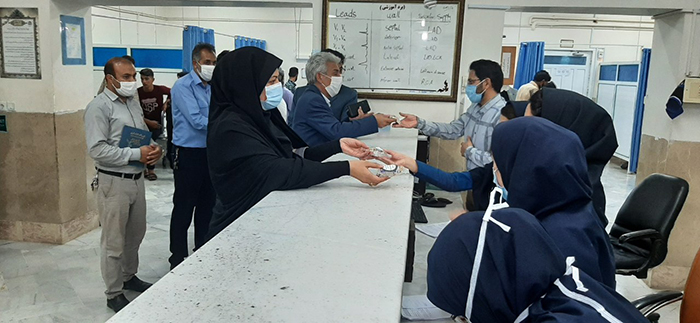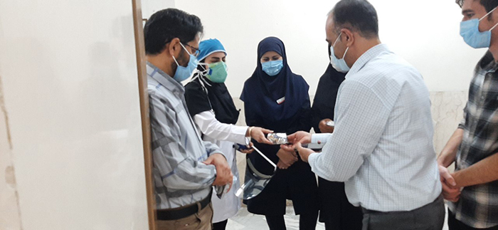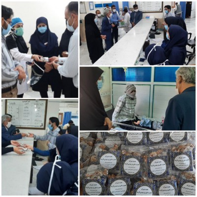 حضور مهندس احسانی مدیر شبکه بهداشت و درمان تایباد به همراه خادمیاران آستان قدس رضوی به مناسبت میلاد حضرت علی ابن موسی الرضا علیه السلام در بیمارستان خاتم الانبیاء و تبریک به همکاران و توزیع بسته های متبرک رضوی.