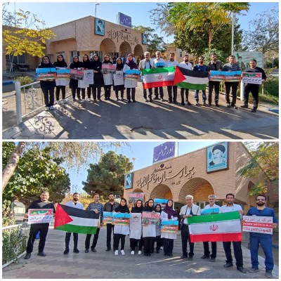 کادر درمان بیمارستان خاتم انبیاء(ص) تایباد در محکومیت رژیم صهیونیستی در حمله به مراکز درمانی غزه در محوطه بیمارستان با حضور مدیر شبکه و ریاست بیمارستان تجمع ضدصهیونیستی برگزار کردند. | ||
